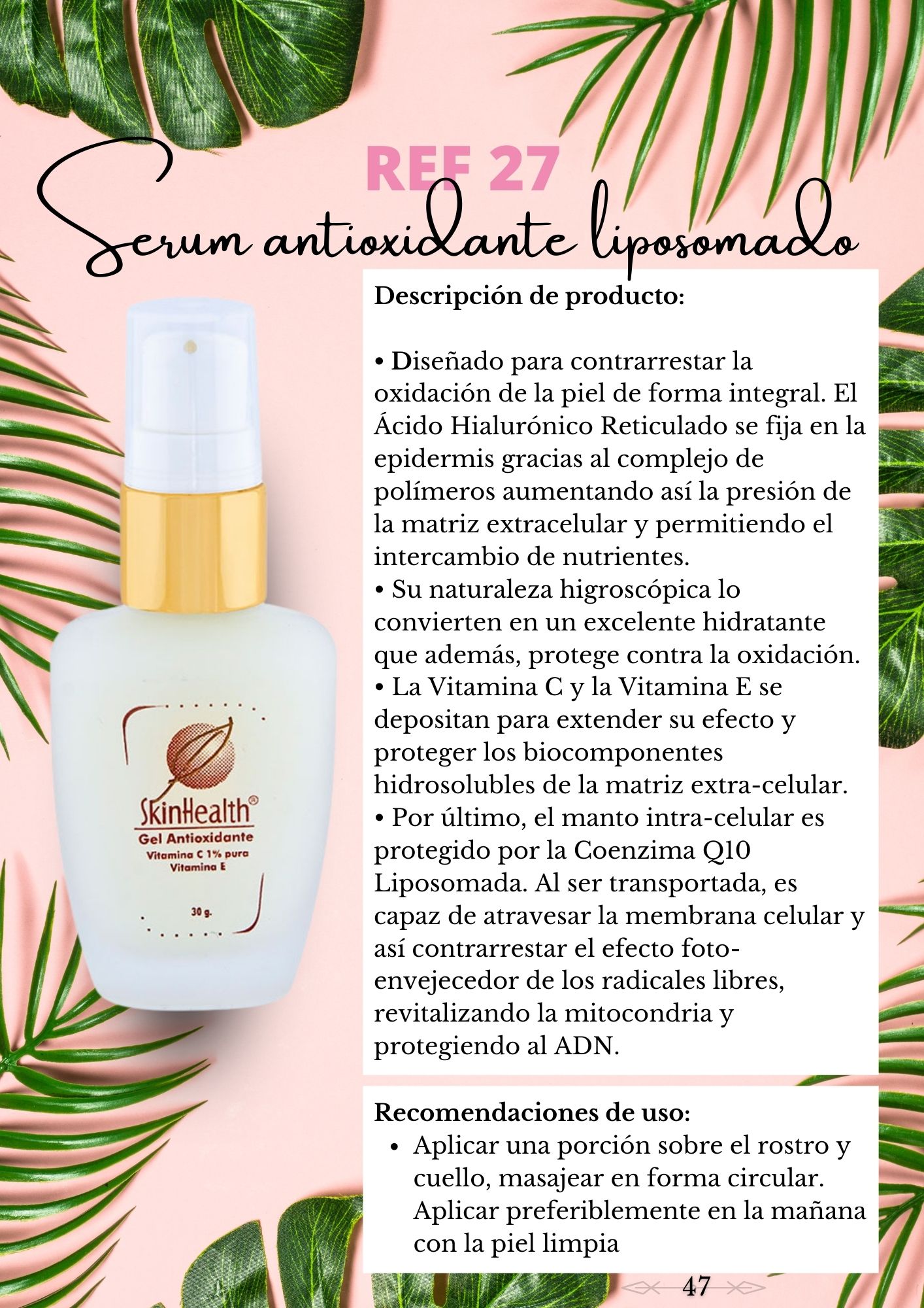 Diseñado para contrarrestar laoxidación de la piel de forma integral. El